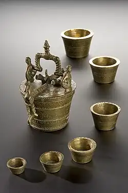 Se conoce como ponderal de vasos anidados o simplemente ponderal, a un conjunto de pesas de metal con forma troncocónica que tienen un aspecto parecido a un vaso. Encajan unas en otras, de tal forma que la última o mayor dispone de una tapa donde pueden colocarse todas las demás. La pieza más grande se llama guardador y la más pequeña que generalmente es maciza se llama disco. Cada uno de los vasos pesa la mitad del anterior, excepto el disco que repite el peso del último vaso. Generalmente se empleaban con una balanza para pesar metales preciosos como oro o plata. Cuando estaban destinados a establecimientos públicos de compra y venta de metales, la precisión de las pesas debía verificarse periodicamente para evitar fraudes, por lo que poseían una marca que era el comprobante de su fiabilidad. Los ponderales de vasos anidados se utilizaron desde el siglo XIV al XIX, aunque la mayoría de los que se conservan proceden de los siglos XVI, XVII o XVIII. Solían fabricarse en la ciudad de Nuremberg en Alemania, desde donde se exportaban a otros países.[1]
