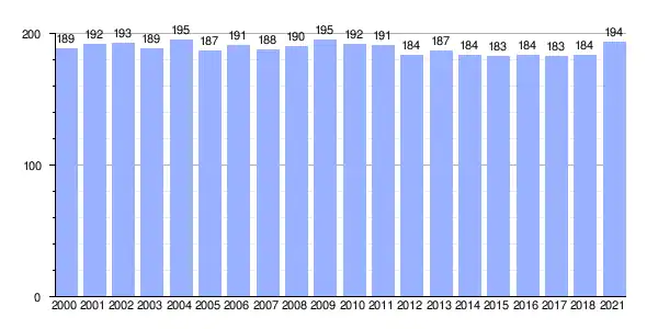| Gráfica de evolución demográfica de Ponte Beluso entre 2000 y 2021 |
