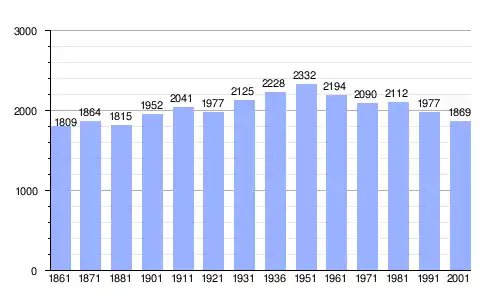 | Gráfica de evolución demográfica de Ponte di Legno entre 1861 y 2001 |