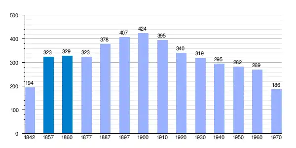 | Gráfica de evolución demográfica de Pontejos[9] entre 1842 y 1970 |