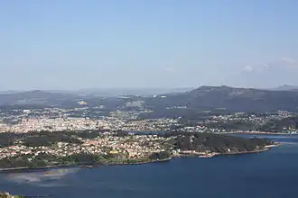 Pontevedra es una ciudad y municipio de España, capital de la provincia homónima.[4][5][6] Se ubica en el noroeste de la península ibérica, en la comunidad autónoma de Galicia. Está enclavada en el margen izquierdo del río Lérez, en su estuario en la ría de Pontevedra,[7] en pleno centro de las Rías Bajas. Es conocida como «Capital de las Rías Bajas»,[8][9][10][11][12][13] «Ciudad del Lérez»[14] y «Boa Vila» (La Bonne Ville o La Buena Ciudad), nombre dado por el cronista francés Jean Froissart en sus crónicas del siglo XIV por su magnífica situación geográfica y su esplendor económico[15][16] y ha sido bautizada por los medios de comunicación franceses como la «Ciudad en la que el peatón es el rey».[17][18][19][20] En el siglo XVI era gracias a su puerto la mayor ciudad de Galicia.[21][22][23][24][25]