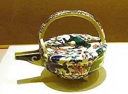 La porcelana se caracteriza por la técnica de pintar en un grosor de cinco colores (rojo, amarillo, verde, morado y azul oscuro) y reflejar la belleza de la naturaleza, mayoritariamente flores y aves, en gran parte de su superficie.