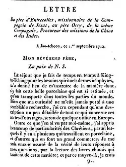 El jesuita francés Francois Xavier d'Entrecolles en 1712 describió el proceso chino de fabricación de porcelana en sus cartas a Europa. «La porcelana de pasta dura, se refiere principalmente a formulaciones preparadas a partir de mezclas de caolín, feldespato y cuarzo. También se puede utilizar otras materias primas que incluyen trozos de cerámica, que son conocidas como petunse.»[7] D'Entrecolles también envió especímenes de materiales a Europa, que fueron analizados por René Antoine Ferchault de Réaumur, y condujo a la creación de la Porcelana de Sèvres una vez que se encontraron materiales equivalentes en Europa.[8]