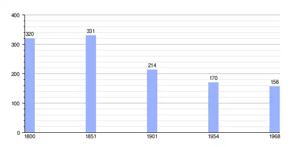 | Gráfica de evolución demográfica de Porcheresse entre 1800 y 1968 |