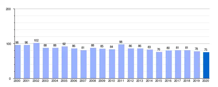 | Gráfica de evolución demográfica de Porquera de Santullán entre 2000 y 2020 |