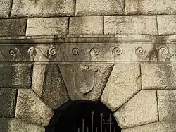 Esta fachada tenía un orden dórico particularmente macizo y robusto, sin base, y una vestimenta completamente cubierta de sillería tosca, incluyendo las semicolumnas y las puertas, mientras que el friso, que contiene metopas y triglifos, parece casi tallado. El uso contemporáneo del orden dórico y de la sillería rústica no era nuevo, ya se había utilizado en edificios anteriores y en edificios contemporáneos a éste, pero esta combinación también está presente en la Arena de Verona, que se encontraba justo al final del nuevo trazado que se estaba formando. Esta combinación de orden dórico y sillería le dio a la fachada un carácter de indestructibilidad y fortaleza, muy adecuado para la arquitectura militar.