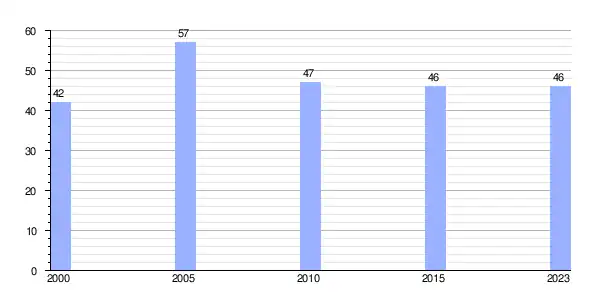 | Gráfica de evolución demográfica de Portamieira entre 2000 y 2023 |