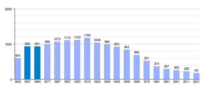 | Gráfica de evolución demográfica de Portell de Morella[2] entre 1842 y 2021 |