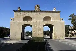 A principios del siglo XX, se eliminó parte de la ornamentación de los arcos para permitir que los tranvías pasaran por la puerta. La luneta fuera de la puerta fue posteriormente demolida para dar paso a una nueva calle,[5] mientras que las murallas a ambos lados de la puerta fueron demolidas en la década de 1930 para hacer frente al creciente volumen de tráfico.[3] Estas alteraciones dieron como resultado que la puerta perdiera su legibilidad como parte de las Líneas de Floriana, haciéndola parecer un arco triunfal.[9]