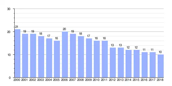 | Gráfica de evolución demográfica de Portodemouros entre 2000 y 2018 |