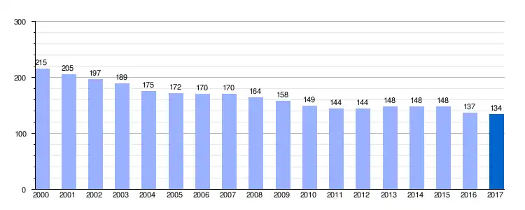 | Gráfica de evolución demográfica de Posada de la Valduerna entre 2000 y 2017 |