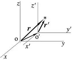 Merece particular atención considerar el vector de posición cuando cambia por traslación el sistema de referencia, pues entonces cambia el vector de posición del punto P. Entre los vectores de posición del punto P respecto a los sistemas de referencia de origen en O y en O′ existe la relación