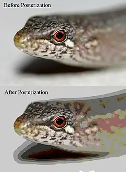 La posterización o cartelización es la conversión o reproducción de una imagen de tonos continuos para obtener otra imagen en la que sólo hay unos pocos tonos diferenciados y presentando una calidad tipo póster. Este efecto se obtiene fotográficamente o por medios digitales, manipulando la fotografía y especificando un conjunto de pasos o gradientes.