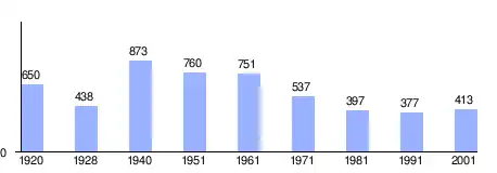 Evolución demográfica de Potamoí entre 1920 y 2001