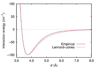 Estos parámetros pueden ser ajustados para reproducir datos experimentales o pueden ser deducidos de resultados muy precisos de cálculos de química cuántica. El término describe la repulsión y el término describe la atracción.