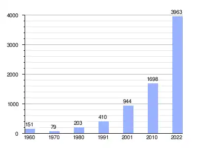 | Gráfica de evolución demográfica de Potrero de los Funes[6] entre 1960 y 2022 |