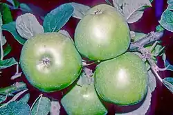 - ↑ Hampson, Cheryl R.; Kemp, Henk (2003). Apples. Botany, Production and Uses, ed. Characteristics of Important Commercial Apple Cultivars. CABI Publishing. pp. 62. ISBN 0-85199-592-6.