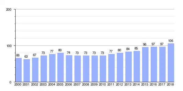| Gráfica de evolución demográfica de Pousada entre 2000 y 2018 |