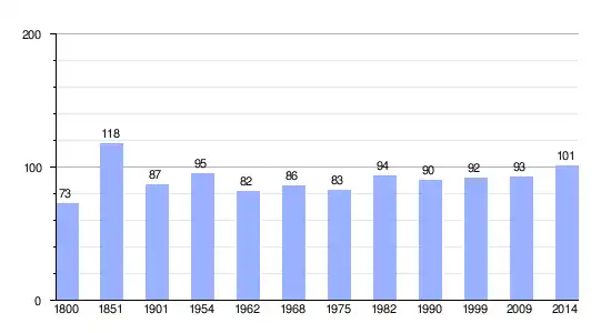 Los datos demográficos contemplados en este gráfico de la comuna de Poussy-la-Campagne[4] se han cogido de 1800 a 1999 de la página francesa EHESS/Cassini, y los demás datos de la página del INSEE.[5]