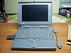 - Carcasa: en plástico gris de 57 × 286 × 236 mm (2,25 × 11,25 × 9,3 pulgadas) y un peso de 3,1 kilogramos (6,8 libras). Presenta dos patillas retraíbles para mantener la caja en un plano inclinado. En el lateral derecho se encuentra la unidad de disquete y la unidad interna de disco duro. En la trasera, protegido por una trampilla, los conectores RS-422, el puerto ADB, puerto SCSI y puerto de video. La batería se encuentra en el lado izquierdo, pudiendo ser sustituida por el usuario.