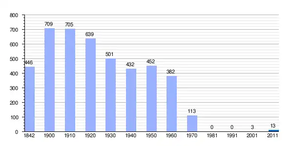 | Gráfica de evolución demográfica de Poyales[5] entre 1842 y 1970 |