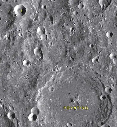 Poynting es un gran cráter de impacto situado en la cara oculta de la Luna. Se encuentra al norte-noroeste de la llanura anurallada del cráter Hertzsprung, con Fersman inmediatamente al este y Kekulé igualmente cerca por el oeste-suroeste.