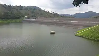 Es una presa hidráulica construida en tierra, con un núcleo de arcilla impermeable, con una protección en el talud cara al aire, de 2 carpetas asfálticas tipo sándwich de 2" cada una. La cola del embalse es de aproximadamente de 12,5 km de longitud. Está implantada a 50 km aprox. desde la ciudad de Portoviejo. Tiene una altura de 40 m. Inicialmente tenía una capacidad de embalse de 100 millones de m³, luego de la batimetría realizada en el año 2001 aproxm. se determinó que era de 89 millones.