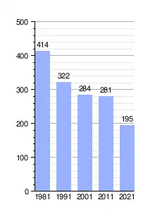 | Gráfica de evolución demográfica de Pozorrubielos de la Mancha[2] entre 1981 y 2021 |