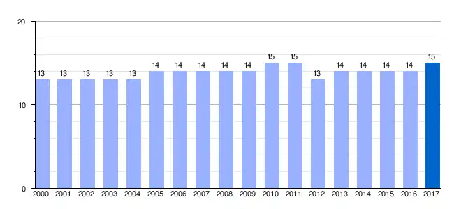 | Gráfica de evolución demográfica de Pozos de Mondar[3] entre 2000 y 2017 |