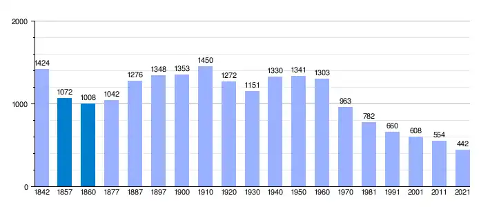 | Gráfica de evolución demográfica de Pozuelo de Zarzón[9] entre 1842 y 2021 |