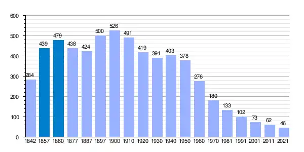 | Gráfica de evolución demográfica de Pozuelo de la Orden[26] entre 1842 y 2021 |
