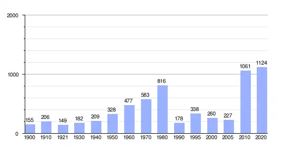 | Gráfica de evolución demográfica de Pozuelos entre 1900 y 2020 |