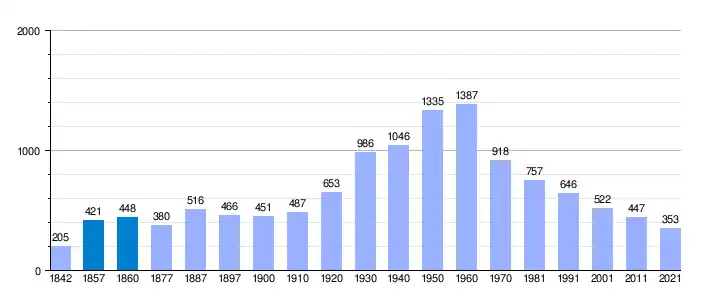 Gráfica de evolución demográfica de Los Pozuelos de Calatrava[3]​ entre 1842 y 2021