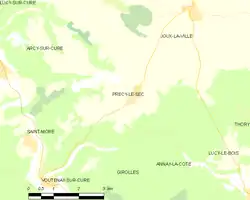 - Situación de Précy-le-Sec en un mapa de Francia y de comunas limítrofes (en francés)