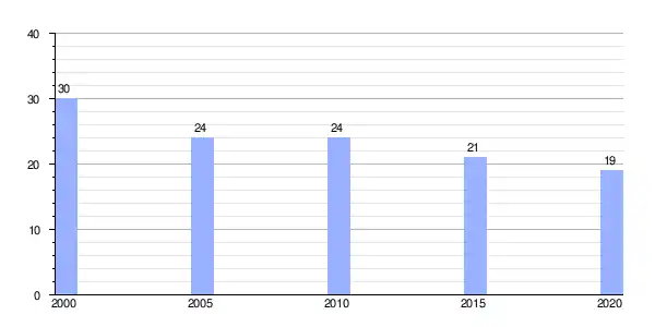 | Gráfica de evolución demográfica de Prógalo entre 2000 y 2020 |