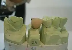 El modelo en yeso o silicona es llevado a un laboratorio dental con las especificaciones realizadas por el dentista para su elaboración y mientras realizan la prótesis fija permanente se procede a colocar una temporal.
