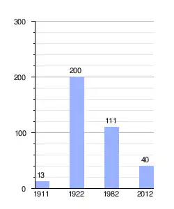 | Gráfica de evolución demográfica de Pradera del Ganso entre 1911 y 2012 |