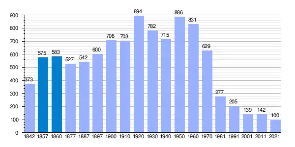| Gráfica de evolución demográfica de Prado de la Guzpeña[7] entre 1842 y 2021 |