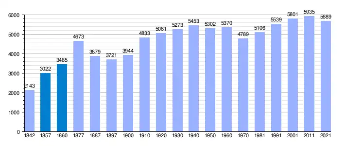 | Gráfica de evolución demográfica de Prado del Rey[3] entre 1842 y 2021 |