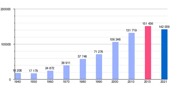 | Gráfica de evolución demográfica de Praia entre 1940 y 2021 |