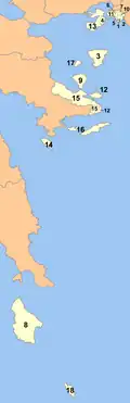 | Municipio | Nombre en griego | Capital (si es distinta) | Código YPES |