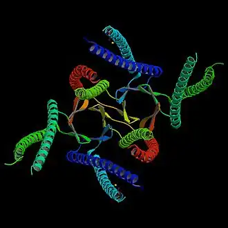 - ↑ Siegert, R., Leroux, M. R., Scheufler, C., Hartl, F. U., and Moarefi, I. (2000). Structure of the molecular chaperone prefoldin: unique interaction of multiple coiled coil tentacles with unfolded proteins. "Cell", "vol. 103": 621–632.