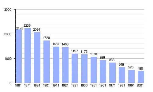 | Gráfica de evolución demográfica de Prelà entre 1861 y 2001 |