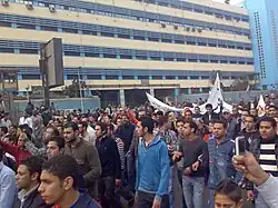 Una de las marchas del 25 de enero de 2011 que pasa ante la «Autoridad de imprenta de Amiria» en Imbaba.