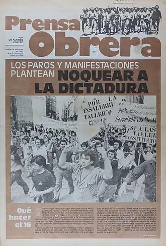 - ↑ «Historia de Prensa Obrera». po.org.ar. Archivado desde el original el 22 de mayo de 2016. Consultado el 4 de junio de 2016.