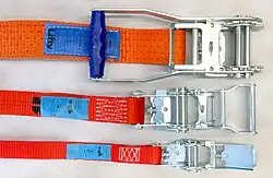 La presión de sujeción se aplica a través de un método mecánico, como un mecanismo de tornillo o trinquete que aprieta la banda, o mediante la naturaleza elástica del material de la banda en sí. Hay una gama de estilos de abrazadera de banda disponibles, en particular el tipo utilizado para enmarcar como se describe anteriormente[2]. Otras abrazaderas de red incluyen las correas de sujeción de carga.
