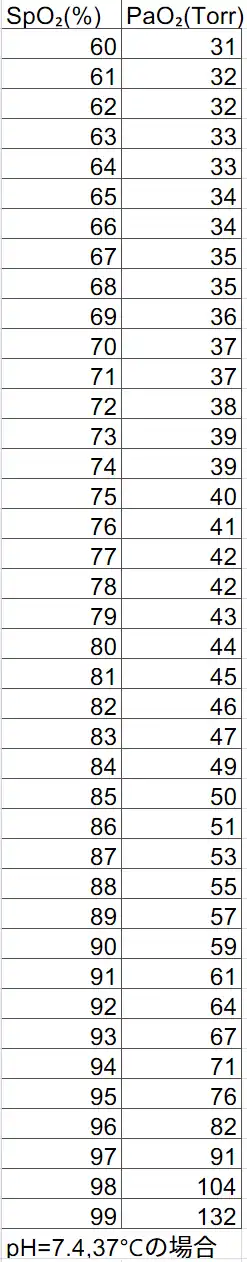 Esta es una estimación y no toma en cuenta las diferencias en temperatura, pH y concentración de 2,3 BPG.[14]