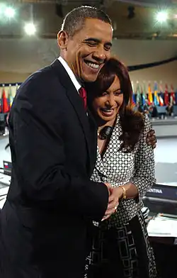 La presidencia de Cristina Fernández fue un período comprendido entre el 10 de diciembre de 2007, fecha de asunción como presidenta de la Nación Argentina, y el 9 de diciembre de 2015 a medianoche, fecha en que terminó su segundo mandato. Su gobierno fue calificado como de centroizquierda.[2]​ Asumió el diez de diciembre de 2007, siendo reelecta cuatro años después, asumiendo su segundo mandato el diez de diciembre de 2011 hasta el diez de diciembre de 2015. En 2019 volvería al poder siendo Vicepresidenta hasta 2023.[3][4]