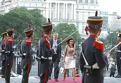 Cristina Fernández luego de producirse el traspaso del mando presidencial, el 10 de diciembre de 2007. Detrás su predecesor, Néstor Kirchner.