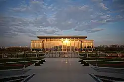 El Palacio Presidencial (en ruso: Резиденция президента, en bielorruso: Рэзідэнцыя Прэзідэнта) es un edificio de estilo estalinista ubicado en la Plaza de Octubre en Minsk; rodeado por las calles Marx, Engels, Kírov y Komsomol.[22] Al igual que la Casa Blanca estadounidense, las calles cercanas a la residencia oficial están cerradas al tráfico de vehículos y patrulladas por fuerzas policiales. Utilizado desde 1994, anteriormente albergaba el Comité Central del Partido Comunista de Bielorrusia.[23][24]